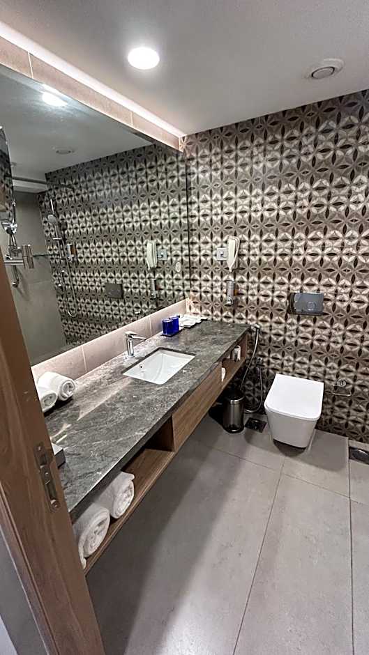 This suite's special feature is the fireplace. Providing free toiletries and bathrobes, this suite includes a private bathroom with a shower, a hairdryer and slippers. The air-conditioned suite provides a flat-screen TV with streaming services, a mini-bar, a tea and coffee maker, executive lounge access as well as city views. The unit offers 2 beds.